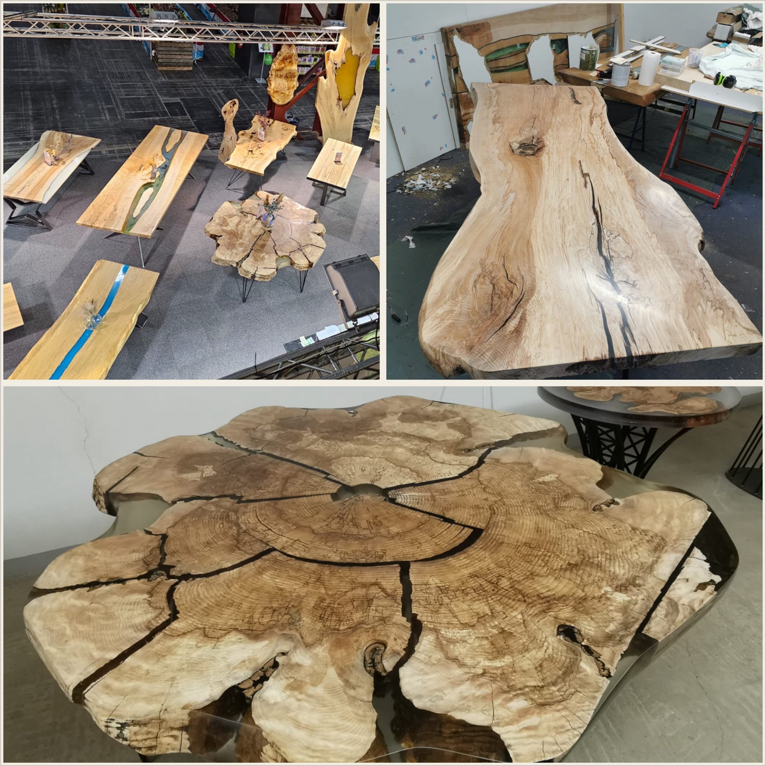 Baumscheiben, edle Esstische und Tische mit Epoxidharz.